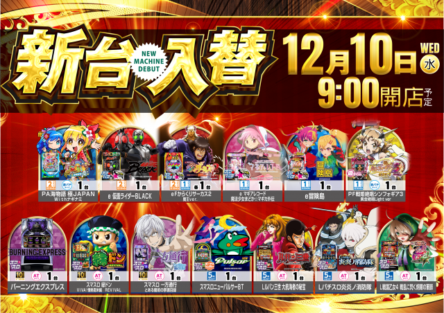 本日17日(水)新台入替🔥10スロで人気機種が打てる🔥