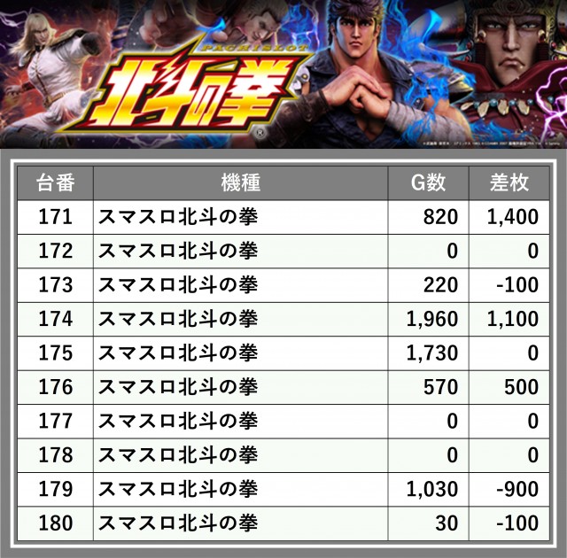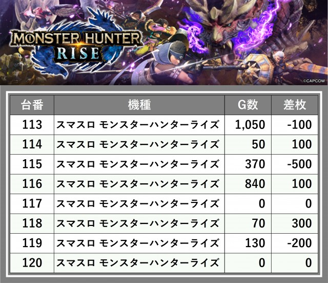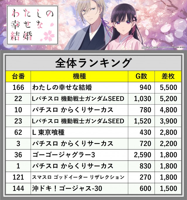 厳選された取材対象機種をはじめ、その他スロット全体から好記録が飛び出した!プレイヤーが楽しんだ1日を下記データにて振り返ってみて欲しい。