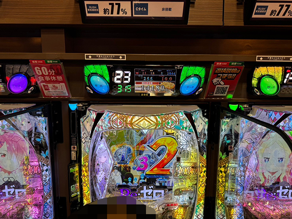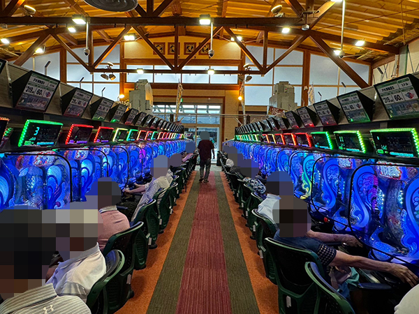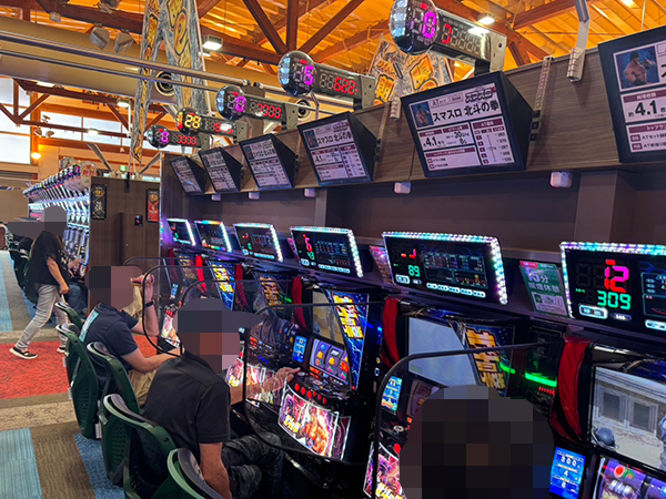 機種構成が魅力的な500円90枚パチスロを見ると、ほぼ満席となるほどの支持を得ていた。