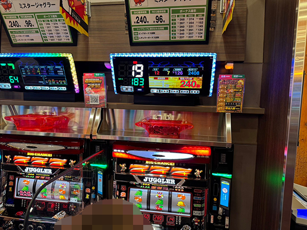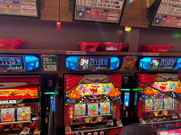 ほかにも「マイジャグラーⅤ」や「ミスタージャグラー」、「パチスロ からくりサーカス」が活況。微笑ましいシーンをあちこちで確認している。