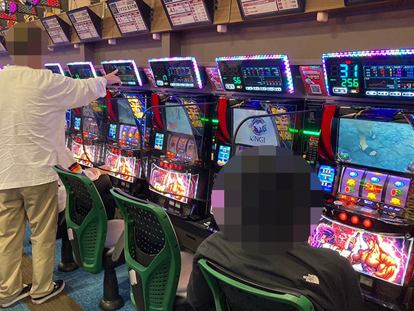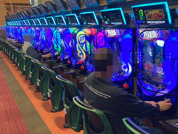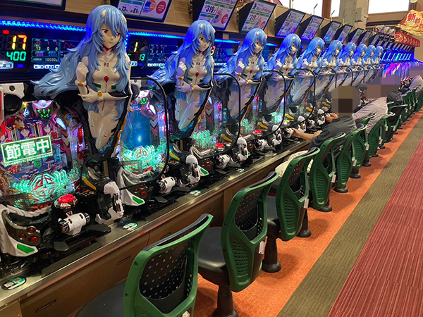 午後の4円パチンコを見てみると「P大海物語5」や「ぱちんこ シン・エヴァンゲリオン Type レイ」が活況。プレイヤーの満足そうな表情から、充実した時間を過ごしていたことがうかがえる。