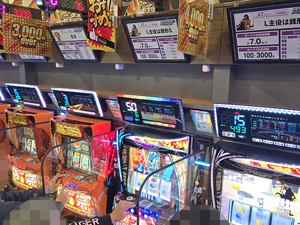 500円/90枚パチスロの支持も厚く、様々な機種で夢中でレバーを叩くプレイヤーが見られた。