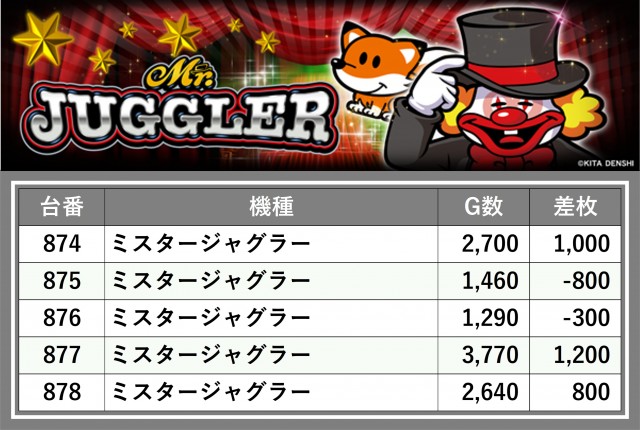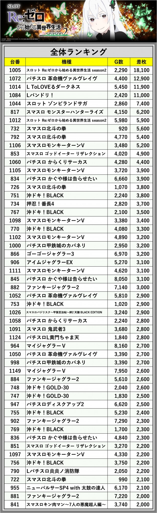 厳選された取材対象機種をはじめ、その他スロット全体から好記録が飛び出した!プレイヤーが楽しんだ1日を下記データにて振り返ってみて欲しい。