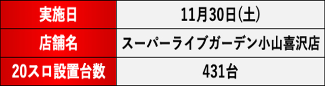 11月30日(土)スーパーライブガーデン小山喜沢店にて、DMMぱちタウンの新感覚取材「スロセレ」を実施。