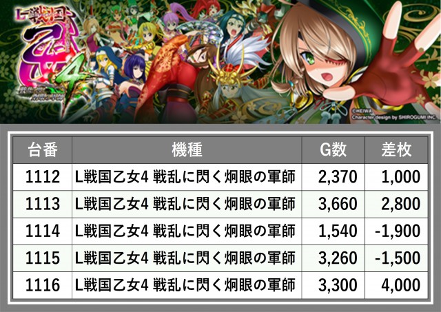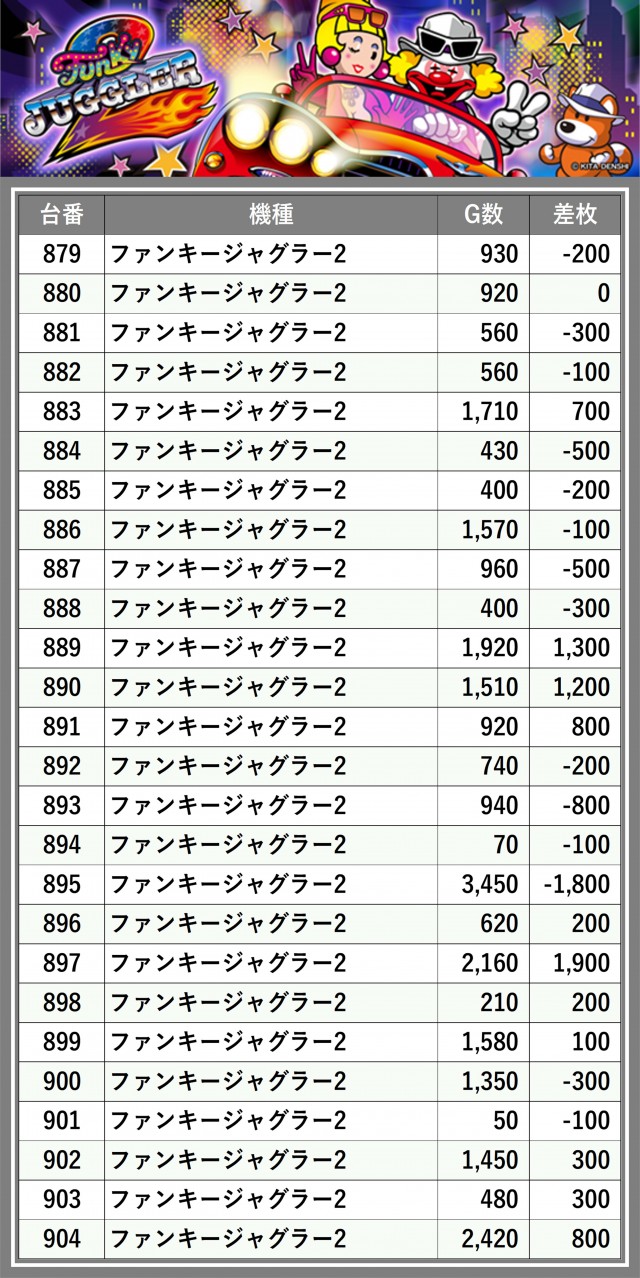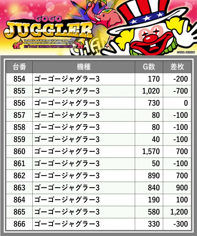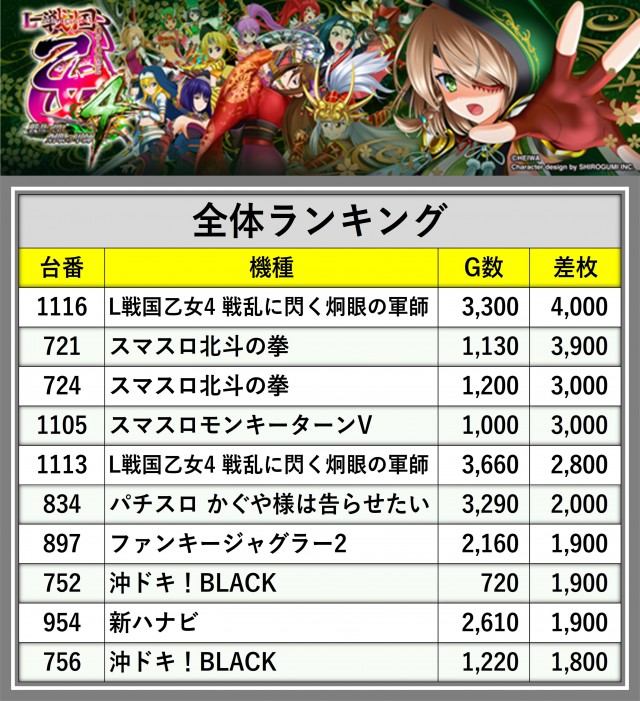 厳選された取材対象機種をはじめ、その他スロット全体から好記録が飛び出した!プレイヤーが楽しんだ1日を下記データにて振り返ってみて欲しい。