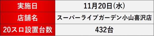 11月20日(水)スーパーライブガーデン小山喜沢店にて、DMMぱちタウンの新感覚取材「スロセレ」を実施。