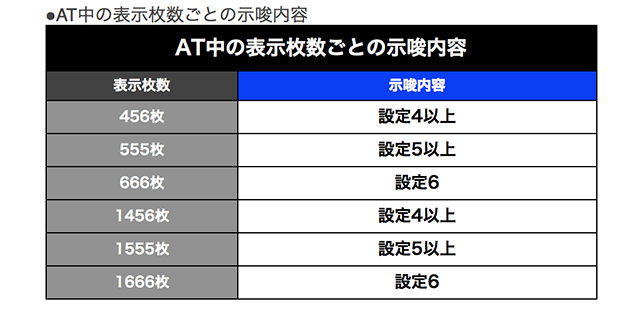 AT中の獲得枚数表示のタイミングには設定を示唆する要素があり、250の倍数以外で獲得枚数が表示されれば設定4以上が濃厚だ。