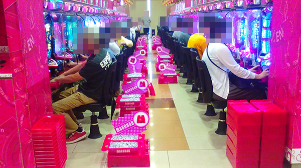 なかでも、「バジリスク~甲賀忍法帖~絆」と「沖ドキ!-30」には、しあわせそうなプレイヤーが多く、充実した時間を過ごせていると思えた。