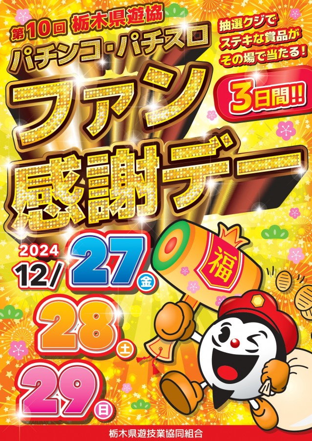 明日より3日間 第10回栃木県遊協ファン感謝デー開催