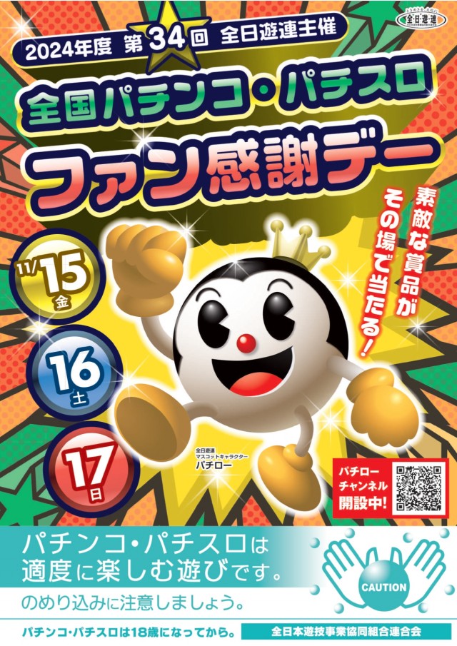明日より3日間 第34回全日遊連ファン感謝デー開催