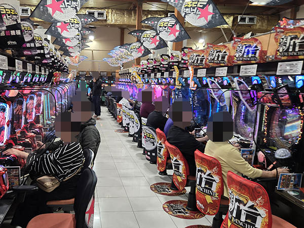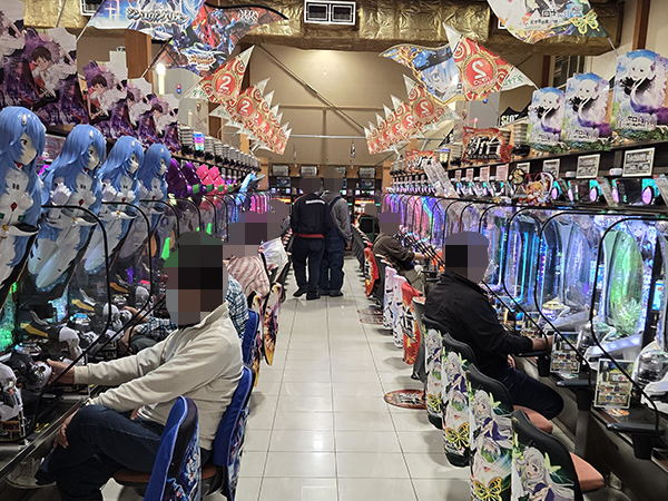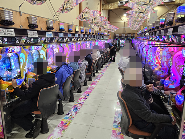 店内では貸し玉料金を問わず様々な機種で、心ゆくまで楽しむプレイヤーの姿が見られた。