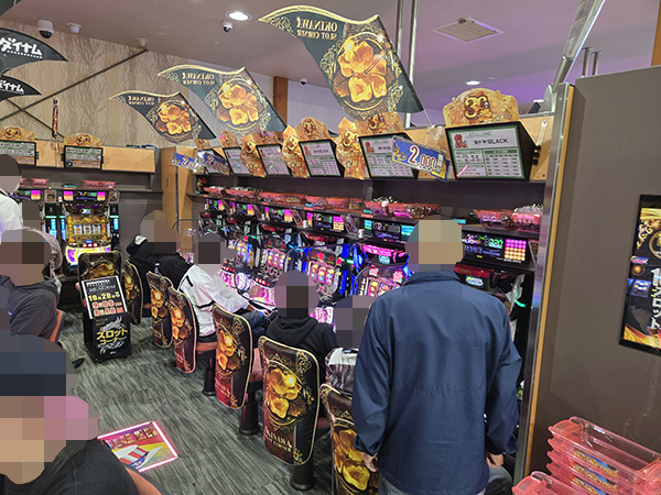 「スマスロ北斗の拳」や「沖ドキ!BLACK」、「沖ドキ!GOLD-30」なども盛況の様子。魅力的なシーンが至る所で見られた。