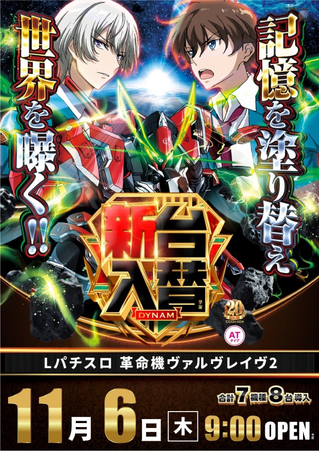 明日20日(木)L革命機ヴァルヴレイヴ2増台!全12機種導入