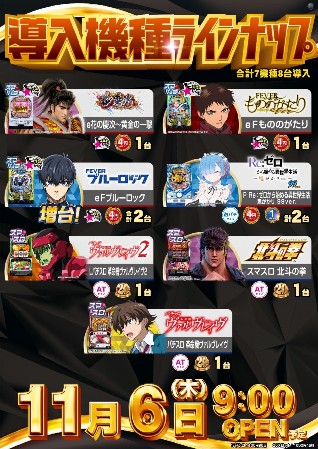 明日6日(木)L革命機ヴァルヴレイヴ2など全6機種導入