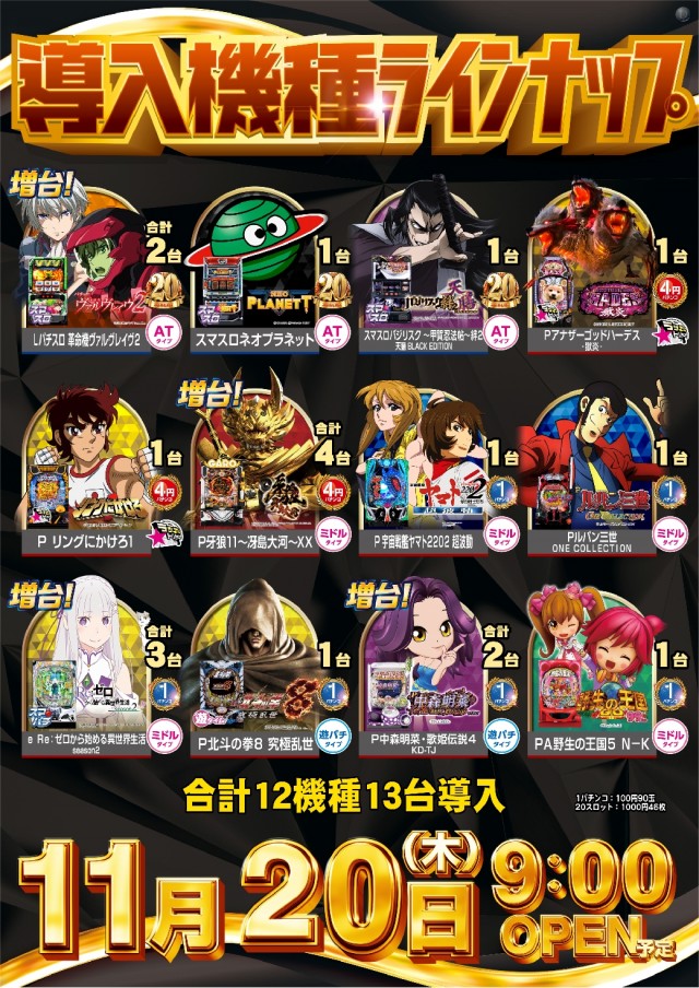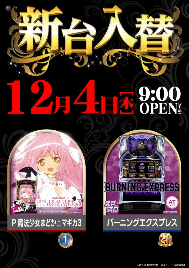 明日4日(木)LバーニングエクスプレスZNなど全2機種導入