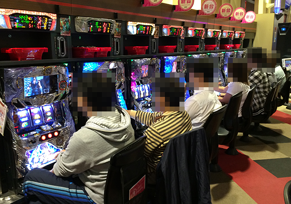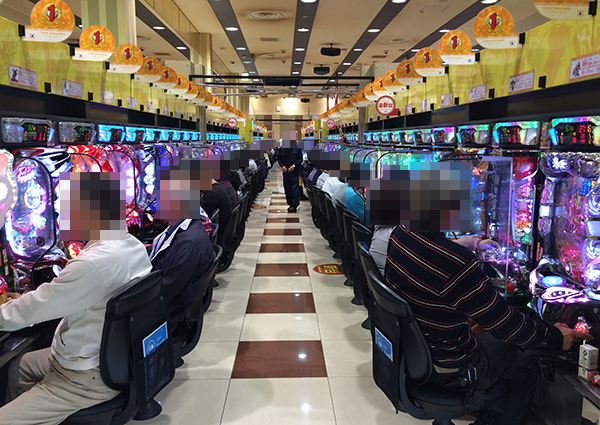 取材のなかで1番の盛り上がりをみせていた13時過ぎになると、パチンコにもパチスロにも笑顔のプレイヤーが多数。