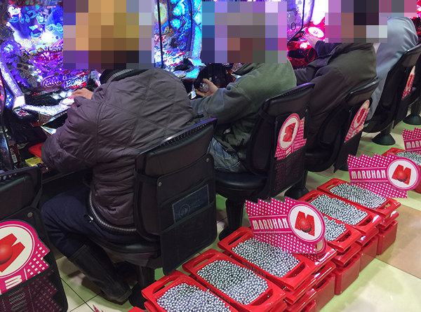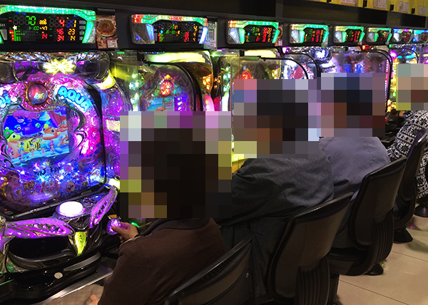 4円パチンコでもMAXタイプは人気。「ぱちんこCR北斗の拳6」や「CR牙狼 魔戒ノ花」には機種の性能を最大限に引き出しているプレイヤーも多く、華やかな光景が広がっていた。