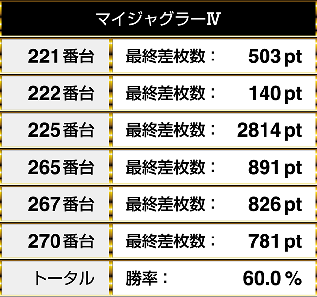 設置台数は10台で、トータルのプラスpt割合は60%であった。