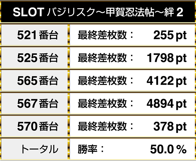 『SLOTバジリスク~甲賀忍法帖~絆2』のプラスptの割合は50%!