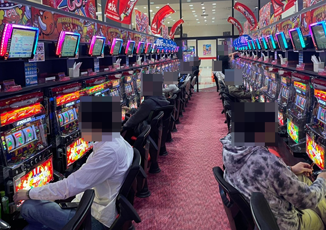 店内をまわっているあいだには、『ファンキージャグラー』でも笑顔のプレイヤーを目にしている。