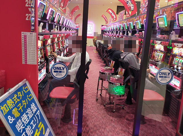 この日は加熱式タバコ&電子タバコの喫煙遊技可能エリアができたリニューアルオープンの2日目。