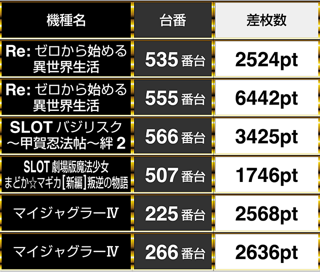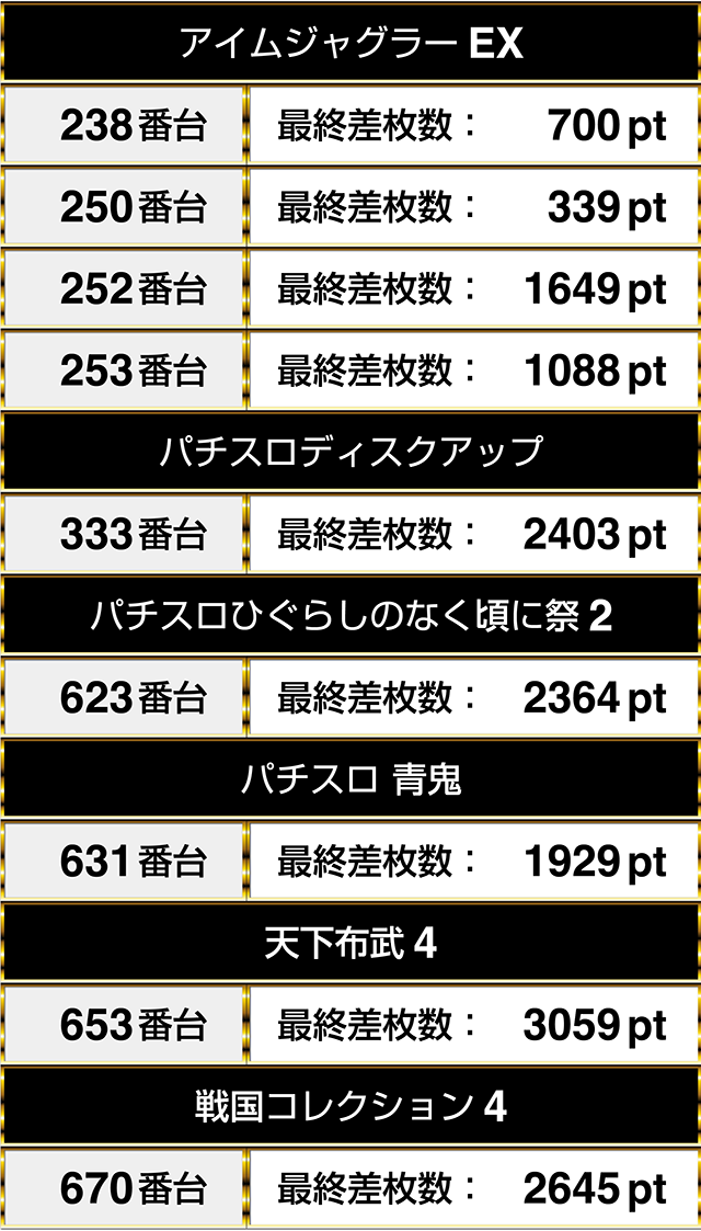 人気を集めていた『マイジャグラーⅣ』の2台は2000ptを上回る!!