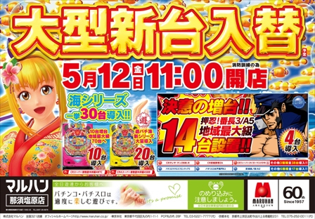 栃木マルハン 明日全店9:00オープン!退屈を吹き飛ばせ!