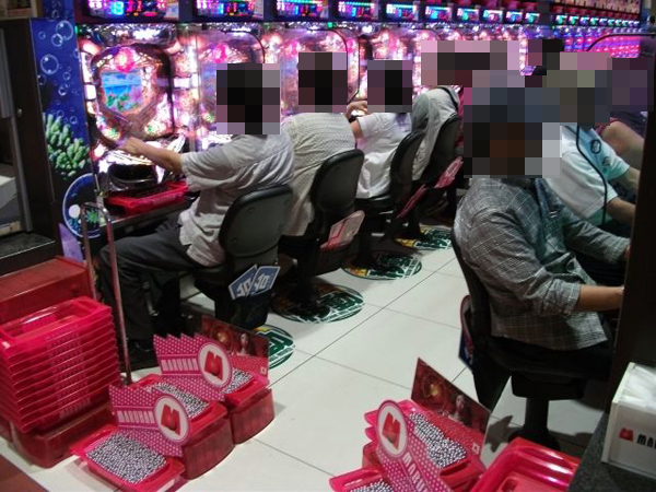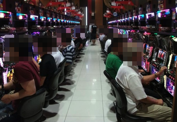 20円パチスロではジャグラーシリーズの人気が目立っており、たくさんのプレイヤーが集まっていた。