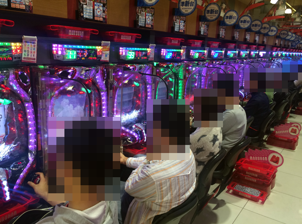 開店後の様子をみてみると、4円パチンコでは新台の「CRヱヴァンゲリヲン10」、「CRバイオハザード0」、「CRギンギラパラダイス クジラッキーと砂漠の国」の3機種がすぐに満席。