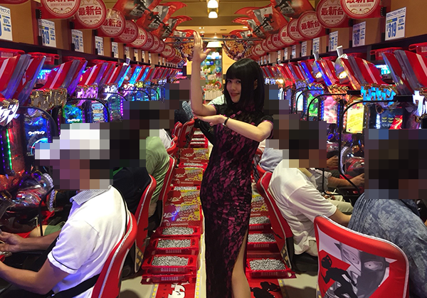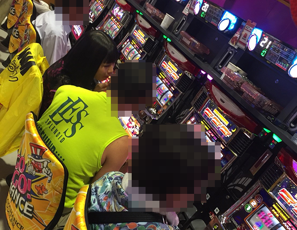 隣のお客様とも打ち解けて、楽しく遊技ができている様子のエリカちゃん。