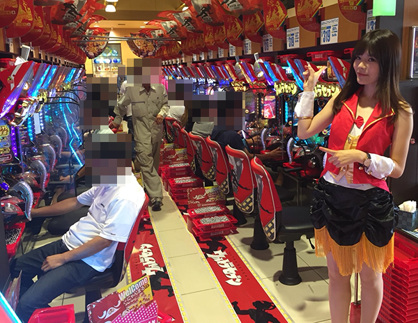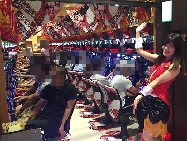 店内はすでに大にぎわいといった状況。パチンコとパチスロの各シマに笑顔が広がっていました~。
