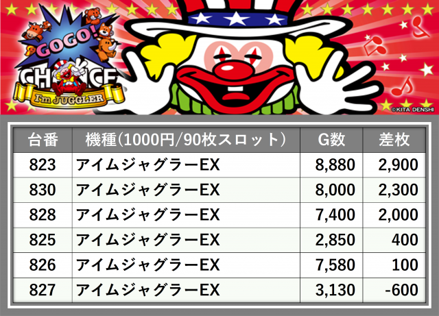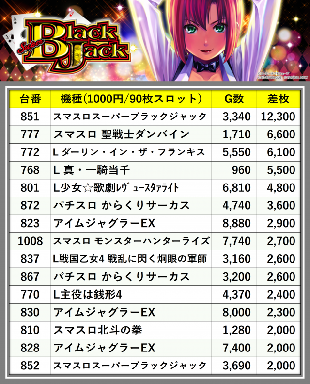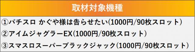 厳選された取材対象機種をはじめ、その他スロット全体から好記録が飛び出した!プレイヤーが楽しんだ1日を下記データにて振り返ってみて欲しい。