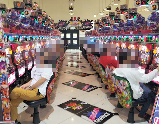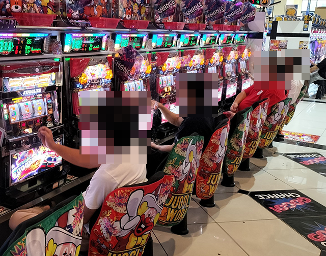 「マイジャグラーV」などのジャグラーシリーズで、プレイヤーたちが楽しそうに遊技中!