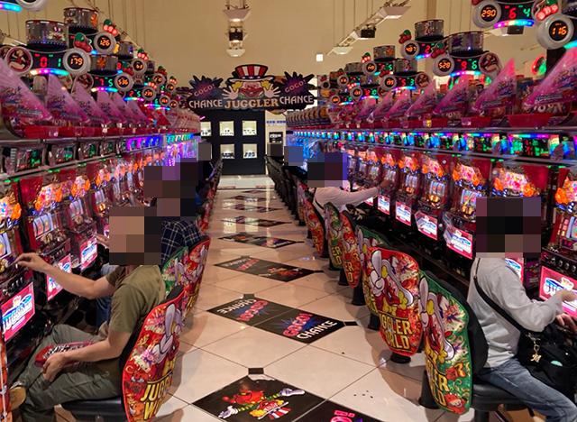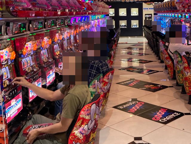 さまざまな機種が支持されているホールにて、『CHANGE』を光らせているプレイヤーを探しにいこう!