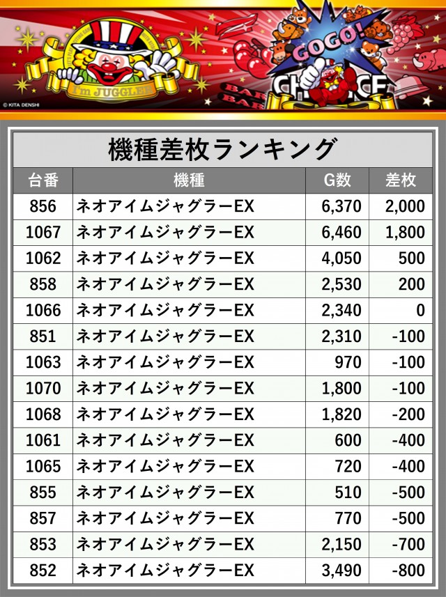 ※差枚数順に掲載しています