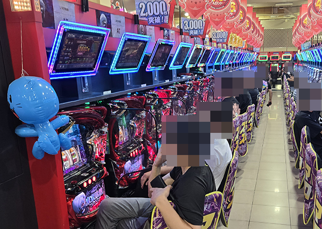 持ち玉で遊技をおこなっているプレイヤーが多く、3,000pt以上となっている台も確認。