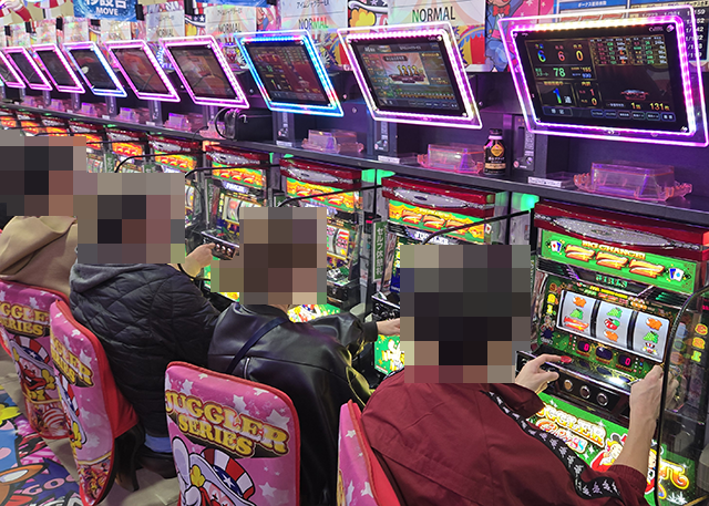 「ジャグラーガールズSS」や「ゴーゴージャグラー3」などでもプレイヤーが活躍中と、各機種が大きくにぎわっていた。