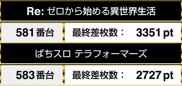 『Re:ゼロから始める異世界生活』と『ぱちスロ テラフォーマーズ』は、2000ptを上回った。