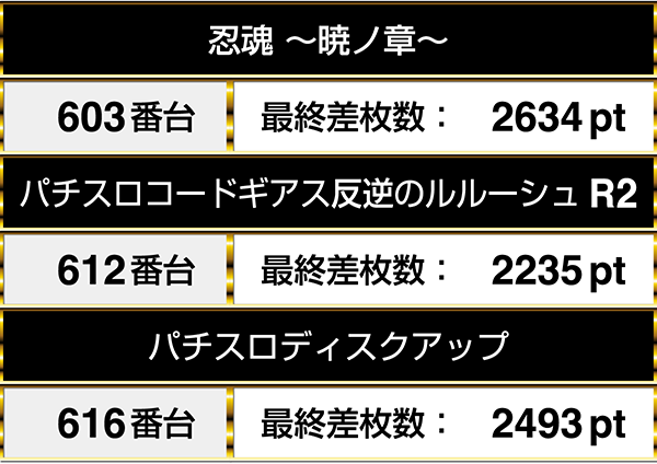 最終的にはどの台も2000pt以上を記録してこの日を終えていた。