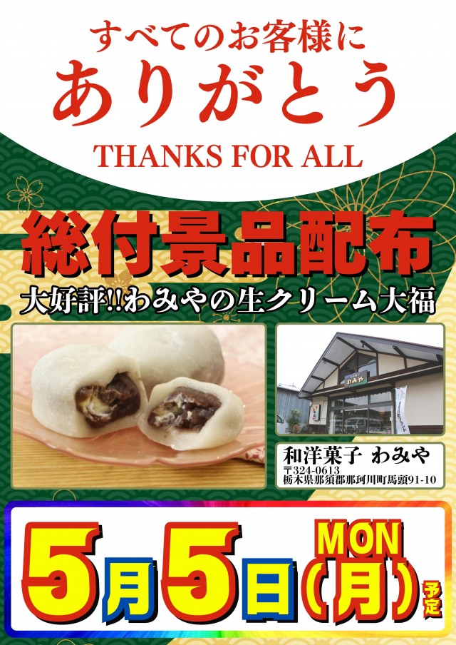 🌈5️⃣月5️⃣日(㊊)【GW】この後AM9:00オープン👍