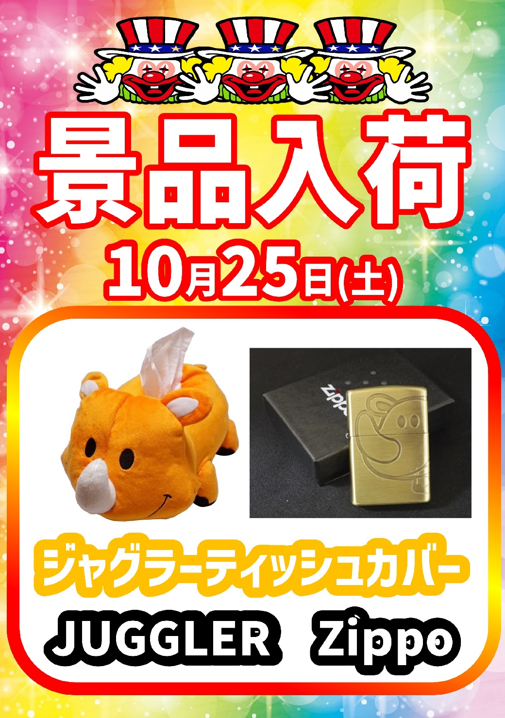 ジャグラー景品入荷!夜からのご来店お待ちしております!