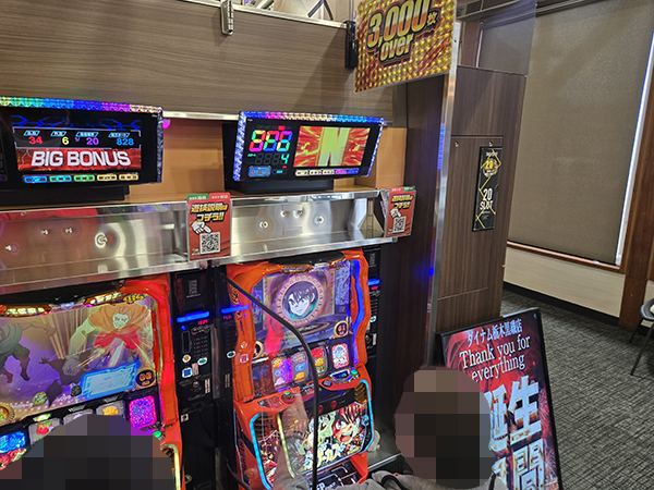 14時ごろの4円パチンコでは、「新世紀エヴァンゲリオン〜未来への咆哮〜」や「e Re:ゼロから始める異世界生活 season2」、「eフィーバーからくりサーカス2 魔王ver.」でプレイヤーが華麗なパフォーマンスを披露。微笑ましいシーンを随所で目にしている。