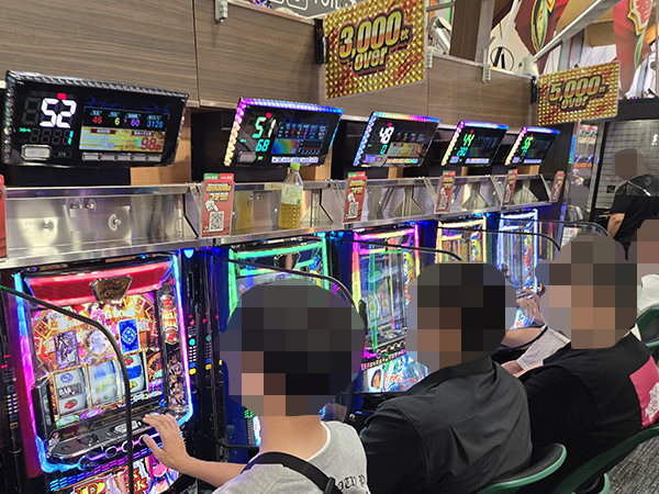 取材時は既に多くのプレイヤーが集結し、パチンコ・パチスロを問わずにぎやかな状況となっていた。