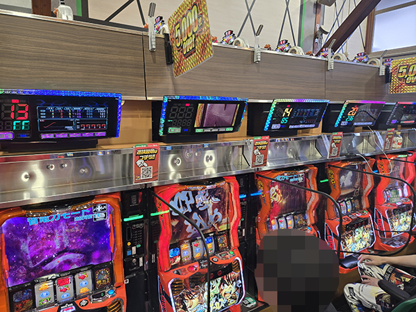多彩な機種構成で人気の高い500円/90枚パチスロでは、真剣な表情でレバーを叩くプレイヤーの姿を数多く目撃している。