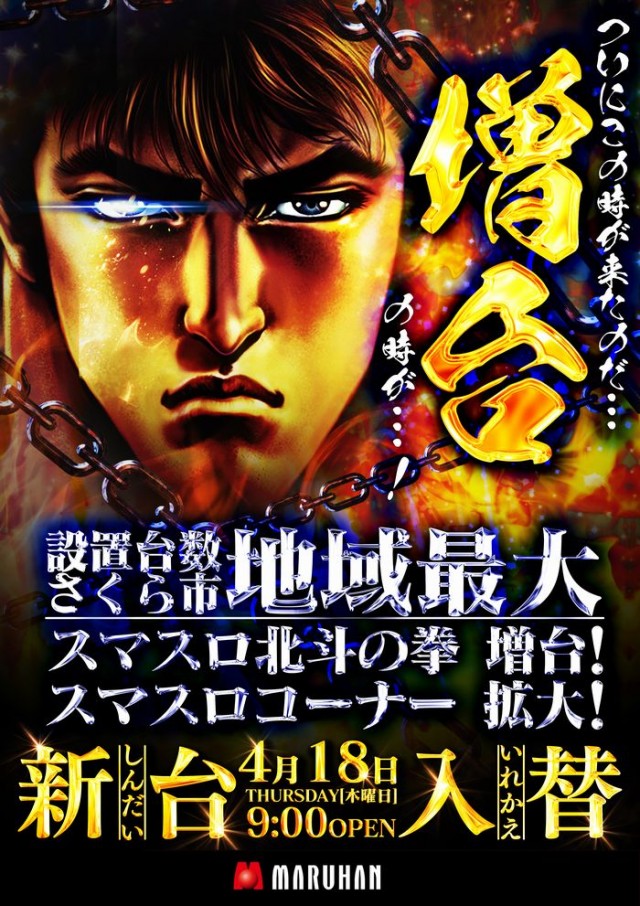 ☆★4月18日(木)新台入替初日!スマスロ北斗増台!★☆