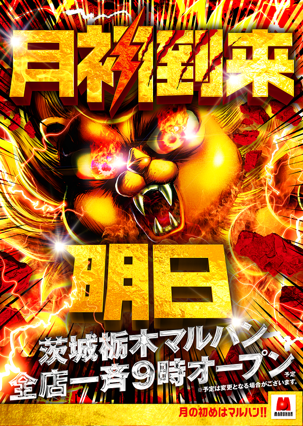 ★★月初到来!!茨城・栃木マルハン全店一斉9時開店★★
