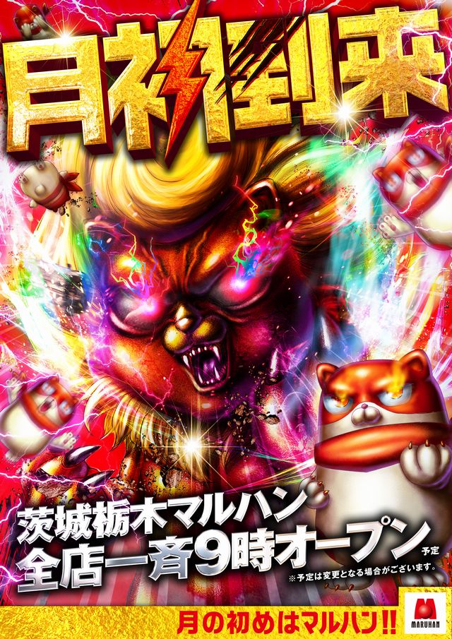 ★★月初到来!!茨城・栃木マルハン全店一斉9時開店★★