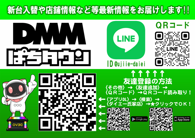 9:00 ~ 22:45 会員カードお持ちの方は22:50まで 延長遊技可能 |