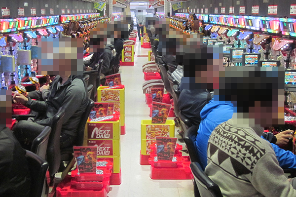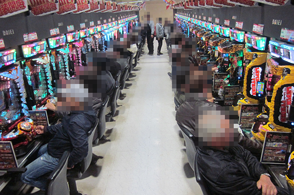 4円パチンコの「CRヱヴァンゲリヲン 2018年モデル」や海物語シリーズなども、たくさんのプレイヤーでにぎわっていた。