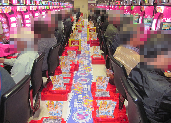 朝イチから人気を集めていた海物語シリーズにも、魅力的な光景が広がっていた。